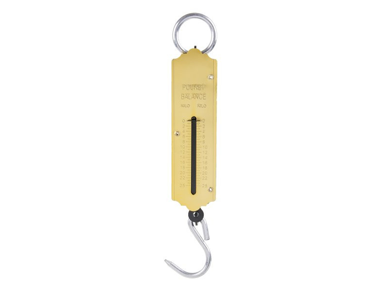 Portable spring scale for the field for fishermen, hunters, gardeners, etc. Maximum load: 25 kg.