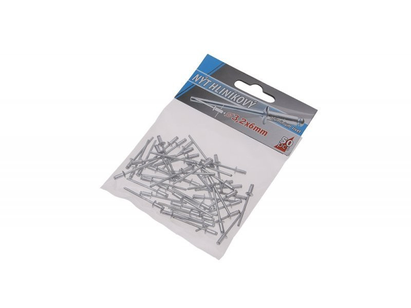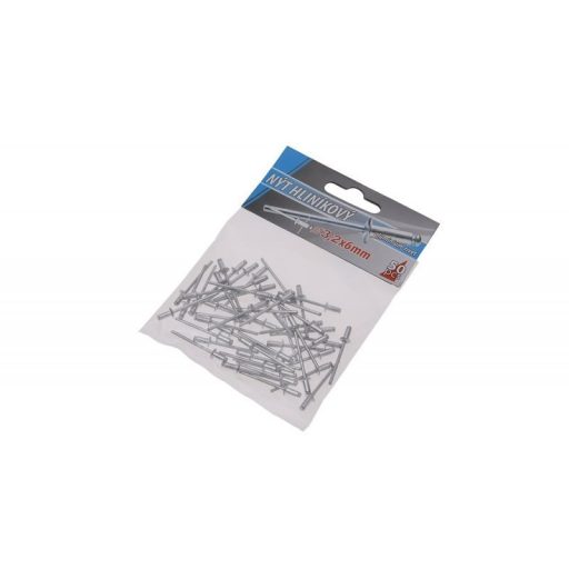 Klasszikus redőny-alumínium szegecsek, átmérő 3,2 mm, hossza 6 mm, 50 db-os kis kiszerelésben, kis fogyasztóknak megfelelő.