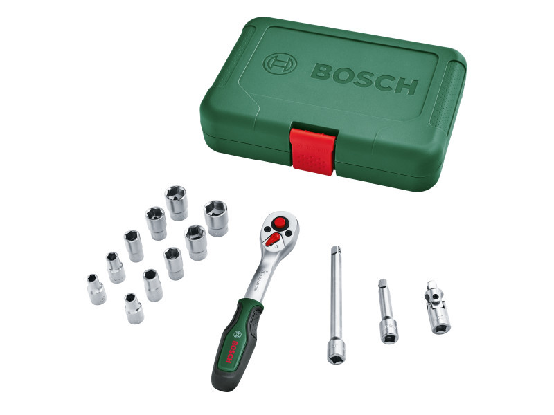 Nagy terjedelem: 1 x 1/4"-os racsni és adapter, plusz 10 dugókulcs és 2 toldórúd