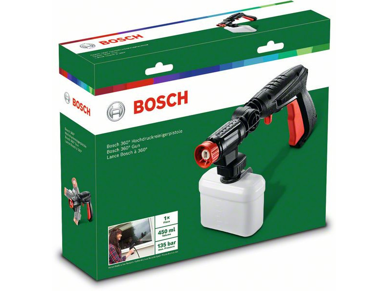 Nyomja meg és pattintsa be a 360°-os kioldópisztolyt a mosóhoz történő csatlakoztatáshoz az egyszerű és kényelmes tisztítás érdekében. A pisztoly akár egy kézzel is használható, így ideális könnyű tárgyak, például gyermekjátékok mosásához. A nehezen hozzáférhető helyeken (így például az ablakpárkányok alatt) az állítható és 360°-ban forgó fúvóka a megfelelő pontra irányítja a vizet. Az állítható erősségű, lapos fúvóka erőteljes vízsugarat biztosít keskeny-lapos beállítással a makacs szennyeződések eltávolításához vagy lágyabb, széles sugárral a szennyeződések kíméletes eltávolításához a legkülönbözőbb felületekről-