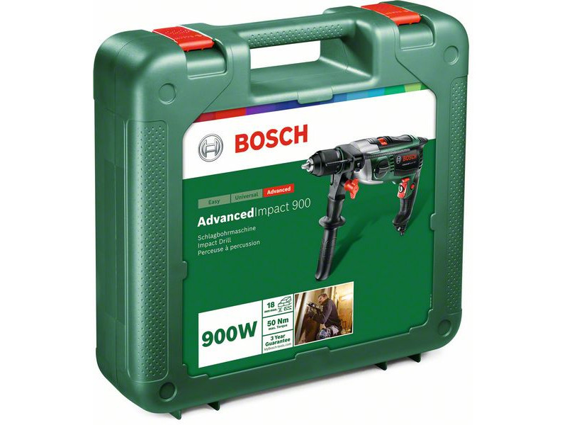 Az AdvancedImpact 900 szerszám tökéletes választás a maximális erőt, teljesítményt és biztonságot igénylő feladatokhoz. A KickBack Control funkció elakadáskor teljesen kikapcsolja a szerszámot. A két sebességfokozat a feladattól függően a fordulatszámra vagy a teljesítményre fókuszál. A Bosch Speed Preselection segítségével pontosan beállítható a fúrási sebesség, míg a Constant Speed automatikusan szabályozza a sebességet a terheléstől független egyenletes eredményért. Az erőteljes, 900 W-os motor és a robusztus Autolock tokmány kiváló eredményt nyújt falazatban, fában, lágybetonban és fémben – falazatban akár 14 mm-es, fában akár 30 mm-es fúrásmélységgel.