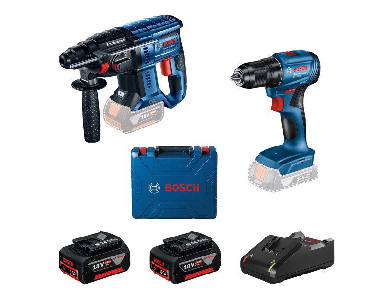 BOSCH Akkus fúrócsavarozó GSR 185-LI + Akkus fúrókalapács GBH 180-LI (2 x 4,0 Ah akku + töltő)