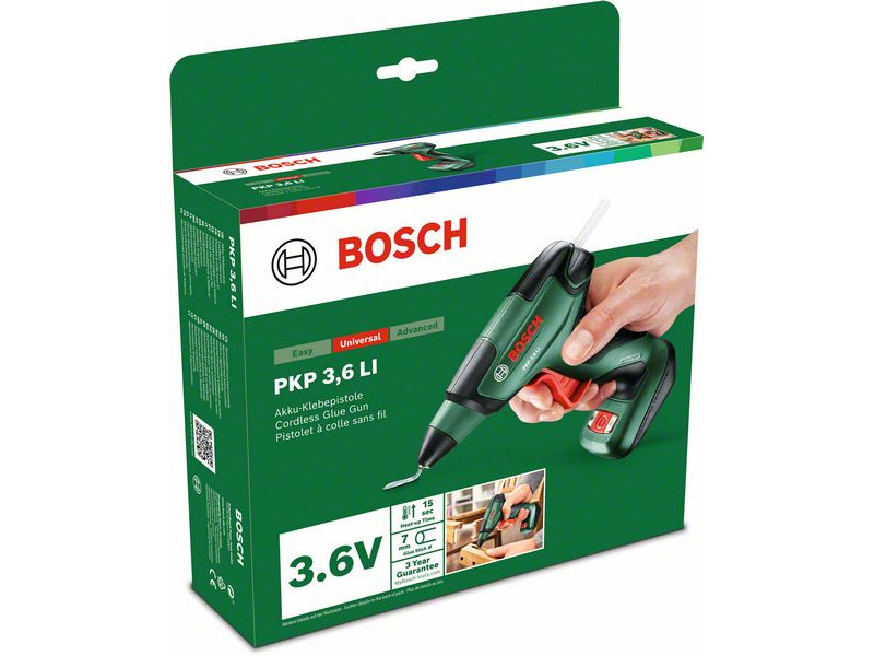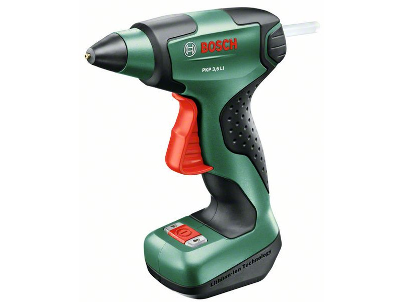 Az akkus ragasztópisztoly kiválóan kezelhető kompakt kialakításának köszönhetően. A lítium-ion akkumulátoros technológia kiküszöböli a memóriaeffektust és az önkisülést, így a használaton kívüli akku nem merül le. A mindössze 15 másodperces felfűtési idővel a feladatok gyorsan, várakozás nélkül elkezdhetők. A PKP 3,6 LI gyakorlatilag bármilyen anyaghoz használható, úgymint papír, karton, textília, bőr, műanyag, fa, fém, parafa vagy kő. Így a kisebb javítások és a dekorációkészítés hihetetlenül egyszerűen elvégezhető.