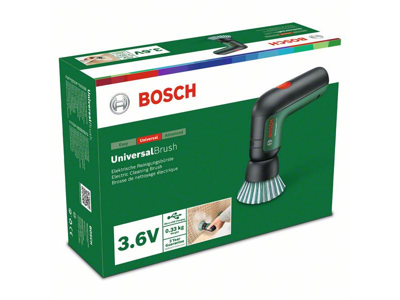 A multifunkcionális és erős UniversalBrush megkönnyíti az életet: sokoldalú segítőtárs a könnyebb és makacs szennyeződések elleni harcban. Nagy teljesítményű motorja szinte állandó kefeforgási sebességet biztosít, így a legnagyobb kihívást jelentő súrolási feladatokhoz is megfelel. A sokféle csatlakoztatható tartozék lehetővé teszi a számos felületen és anyagon való használatot. Az IPX5 fröccsenő víz elleni védettség révén nedves környezetben is használható. Ez a kefe alkalmas csempék és illesztések, kerti bútor, sütők, fazekak és serpenyők, zuhanyüveg súrolására és a szűk helyekre is befér, pl. csapoknál és a zuhanyzóban. Ez a kézreálló eszköz akkuval működtethető, micro USB kábellel tölthető.