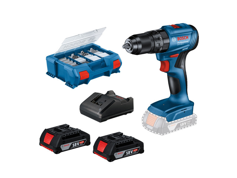GSR 185-LI akkus ütvefúró-csavarozó 82 részes tartozékkészlettel és 2 x 2,0 Ah-s akkumulátorral szerszámtáskában, kedvezményes áron.