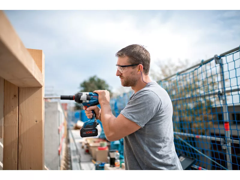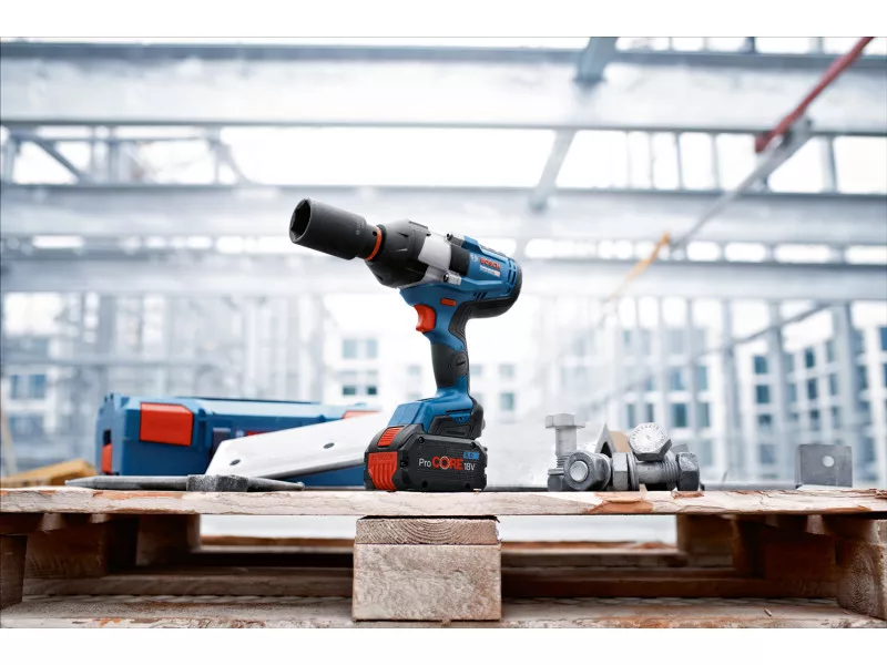 A GDS 18V-1050 C Professional maximális teljesítményt biztosító ütvecsavarozó fémcsavarok és anyák meghúzásához és eltávolításához M 24-es méretig, különböző feladatokhoz, pl. acélszerkezet-építés, csőszerelés, járműkarbantartás vagy a faépítésben használt csavarok/csapszegek használatakor. Az összes 18 V-os Bosch Professional akkumulátorral és töltővel kompatibilis (Professzionális 18V rendszer) – a maximális teljesítményhez használj ProCORE18V ≥ 5,5 Ah akkumulátorokat. Illeszkedik az AMPShare több márkás akkumulátor-rendszerébe is.