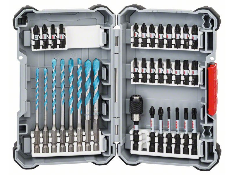 Egyedileg összeállítható készlet, nagy szilárdságú bitekkel - A 35 részes, egyedileg összeállítható, nagy szilárdságú biteket tartalmazó Pick and Click MultiConstruction fúró- és Impact Control csavarbitkészlet ideális nagy igénybevételű alkalmazásokhoz