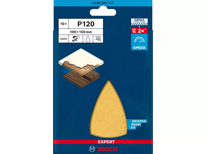 BOSCH EXPERT C470 Tépőzáras deltacsiszolólap 7 lyukas 100 x 150 mm / P120 (10 db)
