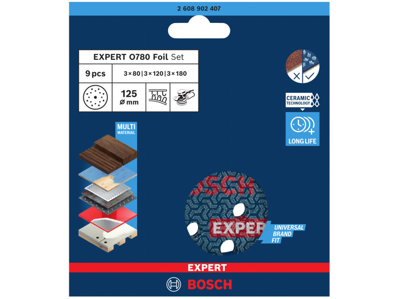 BOSCH EXPERT O780 Foil Tépőzáras csiszolótárcsa készlet 9 részes 125 mm kerámiaszemcsés