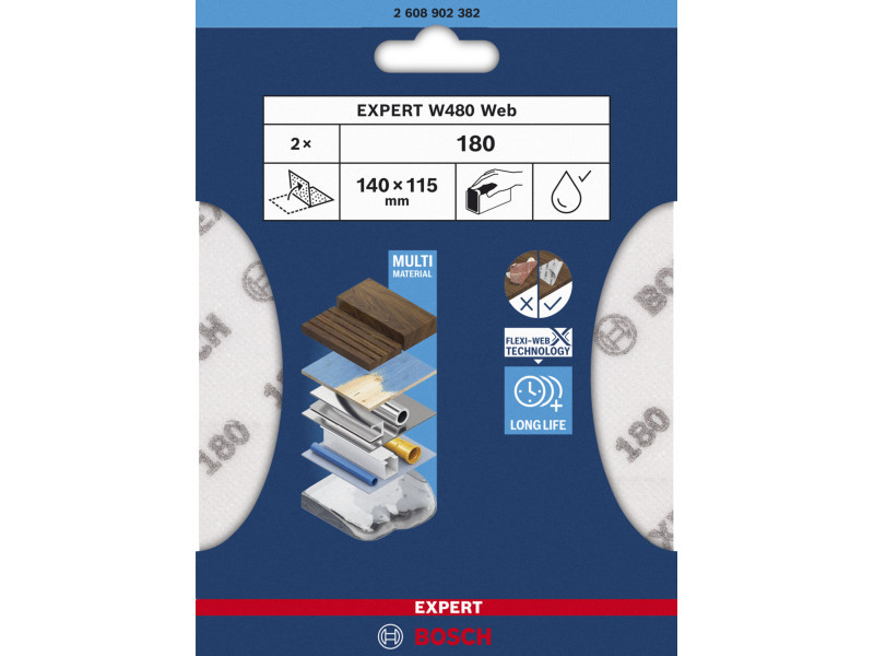 BOSCH EXPERT W480 Csiszolóháló mosható 140 x 115 mm /P180 (2 db)