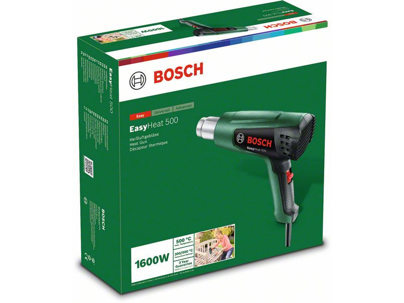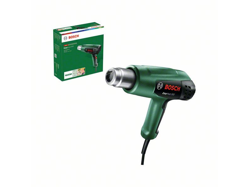 Kompakt méretű, biztosan kezelhető hőlégfúvó. Az EasyHeat 500 könnyű és kompakt kialakítású, és kényelmes markolatrésszel rendelkezik az egyszerű és ergonomikus munkavégzéshez. Az egyszerű felhasználói felületen két hőmérséklet-beállítási ikonnal választható ki a kívánt üzemmód a feladattól függően. A szerszám megtámasztására szolgáló gumírozott, csúszásmentes hátsó felület további stabilitást biztosít. A többféle fúvókának köszönhetően a hőlégfúvó számos feladathoz használható, mint például festékeltávolítás, vízcsövek kiolvasztása, gyomirtás, kábelzsugorítás, kreatív projektek.