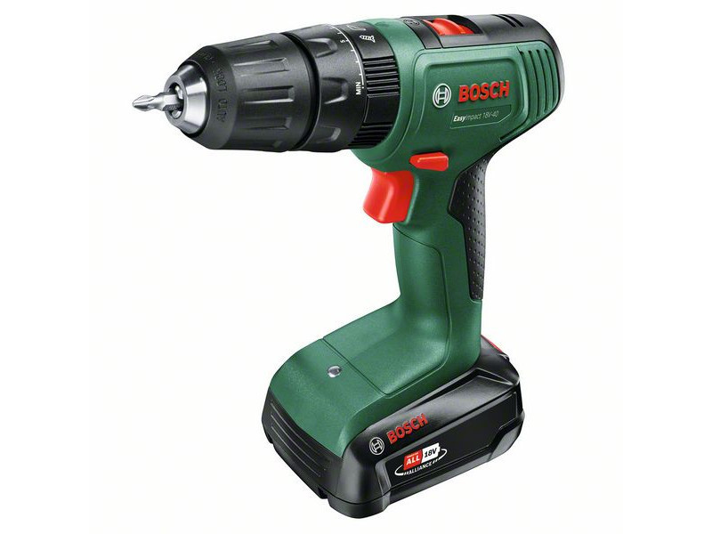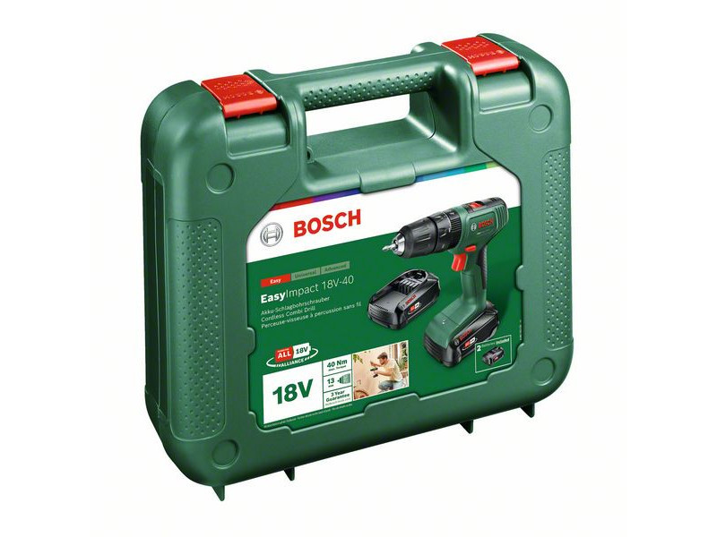 A kompakt EasyImpact 18V-40 sokoldalú szerszám csavarbehajtáshoz, fúráshoz és ütvefúráshoz. A kényelmes munkavégzéshez tervezett keskeny, ergonomikus fúró LED-világítással, 13 mm-es egyhüvelyes tokmánnyal, két fokozattal és 20 nyomatékszinttel rendelkezik a fémben, fában, műanyagban és falazatban történő egyszerű használathoz..