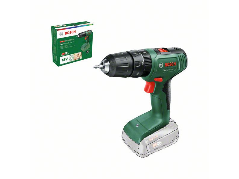 A kompakt EasyImpact 18V-40 sokoldalú szerszám csavarbehajtáshoz, fúráshoz és ütvefúráshoz. A kényelmes munkavégzéshez tervezett keskeny, ergonomikus fúró LED-világítással, 13 mm-es egyhüvelyes tokmánnyal, két fokozattal és 20 nyomatékszinttel rendelkezik a fémben, fában, műanyagban és falazatban történő egyszerű használathoz..
