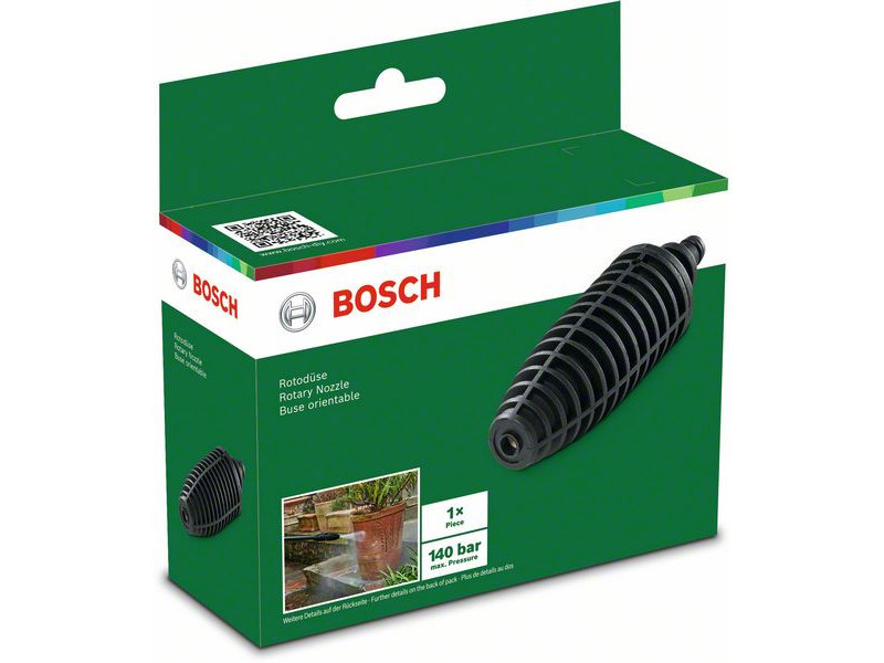 A forgó fúvóka erőteljes és gyors tisztítási eredményeket biztosít makacs kültéri szennyeződések esetén is. Könnyen csatlakoztatható a mosóhoz, és nagy sebességű, nulla fokos, körkörös mozgású szórásképet hoz létre. Ez a nagy intenzitású vízsugár fellazítja a szennyeződéseket és a koszt, felére csökkentve a tisztítási időt. A forgó fúvóka mindkét területen a legjobbat nyújtja: magasnyomású tisztítást, akár 140 bar nyomásig és széles lefedettséget. Ezáltal nélkülözhetetlen kiegészítő a sík, széles területek, például teraszok és felhajtók intenzív tisztításához vagy a makacs szennyeződések; rozsda és festék eltávolításához-