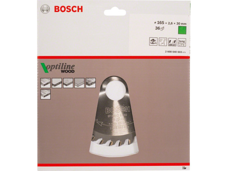 BOSCH Fűrésztárcsa fához 165 x 30/20 x 2,6 mm / 36T Optiline Wood ATB