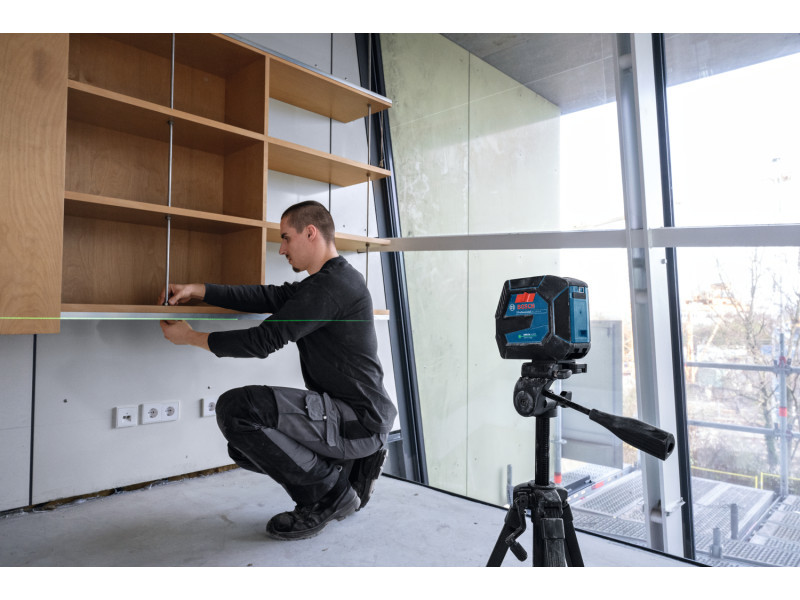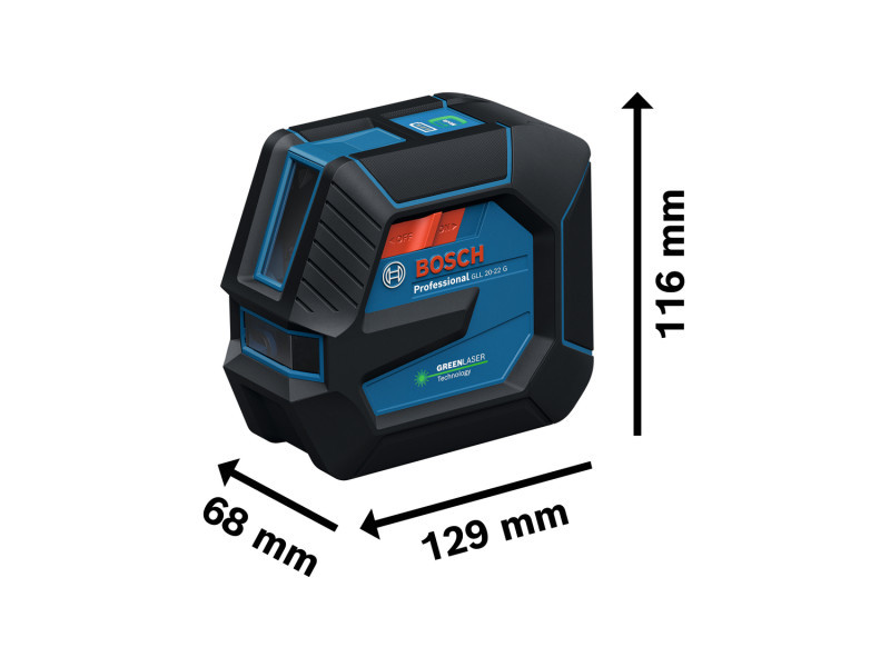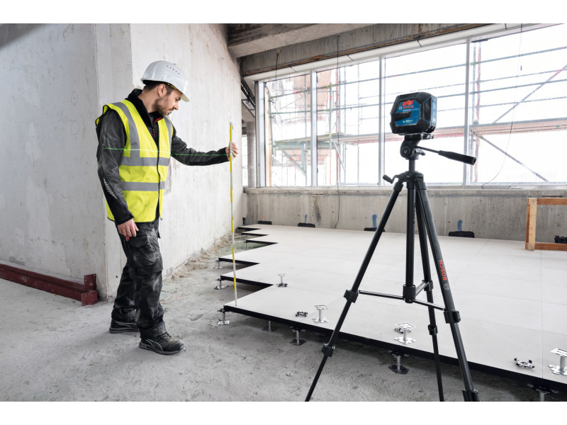 BOSCH Keresztvonalas lézer (zöld) GLL 20-22 G védőtáskában + BT 150 Állvány + lézer céltábla IP65