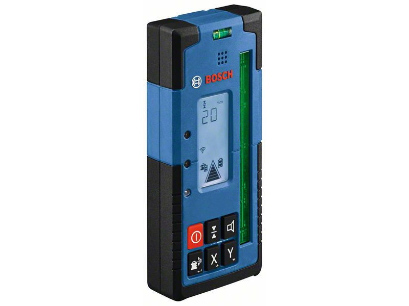 A kompakt és robusztus LR 65 G Professional kiváló minőségű lézervevő, amely gyorsan észleli a zöld lézersugarakat. Hosszú (125 mm-es) vevőnyílása és kétoldalú, háttérvilágítással rendelkező kijelzője mm-ben megadható eltolás funkcióval hatékony munkavégzést és a lézer gyors észlelését teszi lehetővé. A tartós gumi billentyűzet, az IP67 szabvány szerinti por és víz elleni védelem, valamint a biztonságos, puha markolat tökéletes eszközzé teszi a nagy teljesítményt kívánó feladatokhoz. Bluetooth® kommunikáció a GRL 650 CHVG Professional forgólézerrel: további funkciók, például felhasználó általi kalibrálás (uCAL), valamint kettős CenterFind és CenterLock.