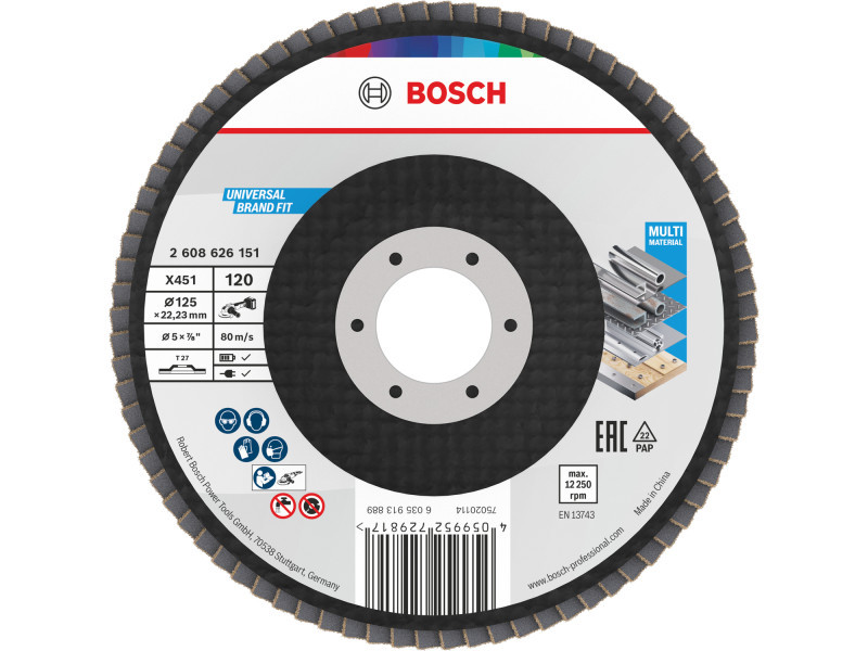 BOSCH Lamellás csiszolókorong egyenes 125 x 22,2 / P120 alu-oxid X451 Multi Material