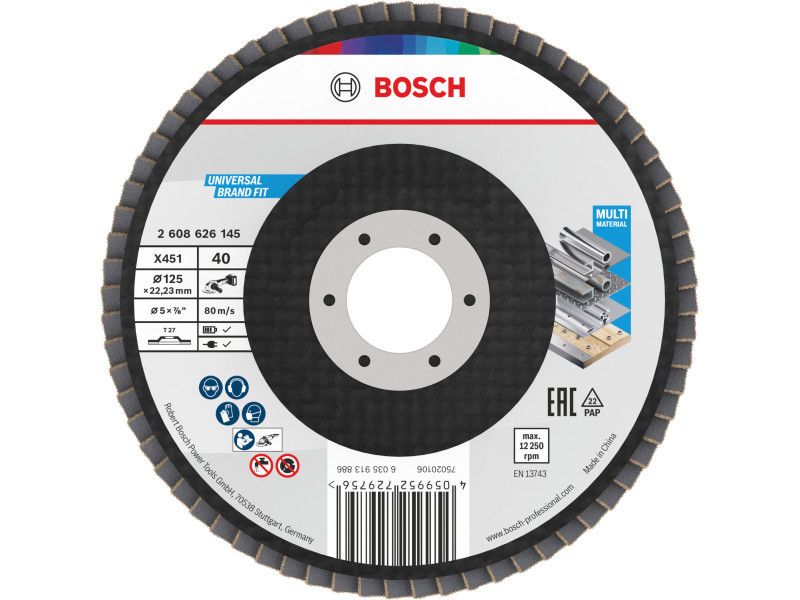 BOSCH Lamellás csiszolókorong egyenes 125 x 22,2 / P40 alu-oxid X451 Multi Material