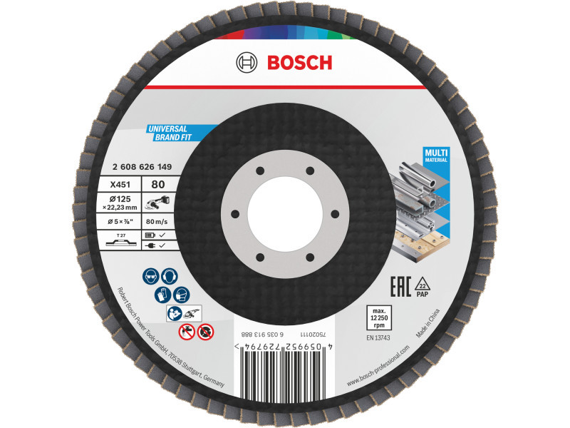 BOSCH Lamellás csiszolókorong egyenes 125 x 22,2 / P80 alu-oxid X451 Multi Material