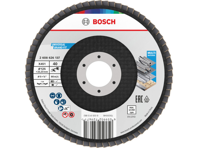 BOSCH Lamellás csiszolókorong kúpos 125 x 22,2 / P40 alu-oxid X451 Multi Material