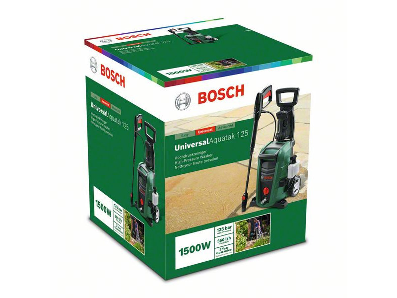 A UniversalAquatak 125 gyors, egyszerű és kényelmes tisztítást tesz lehetővé. Az egyedülálló Trio Nozzle három fúvóka kombinációja. Kevesebb idő- és munkaráfordítás az erőteljes permetezőfúvóka beállításával a közepes méretű autók, a kerti bútorok és az esőcsatornák tisztításához-
