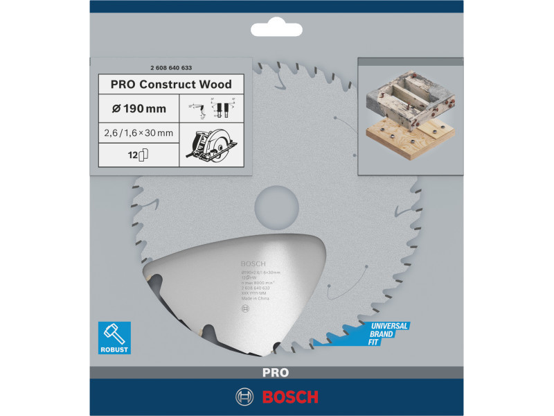 A PRO Construct Wood körfűrészlap kiemelkedő szilárdságát, pontosságát és tartósságát az edzett acél alaptestnek és a kiváló minőségű keményfém fogazatnak köszönheti. A fűrészlap a foggeometriája révén kellően erős a szögek és betonmaradványok átvágásához. A fűrészlap a hőfelhalmozódás megelőzéséhez tágulási hézagokkal is rendelkezik