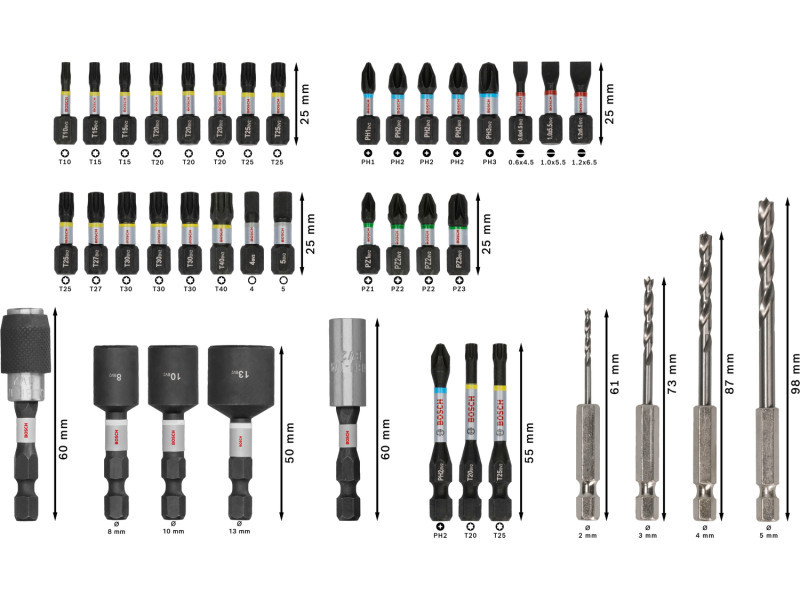 BOSCH PRO Impact bithegy és fafúrószár készlet 40 részes 1/4" Hex