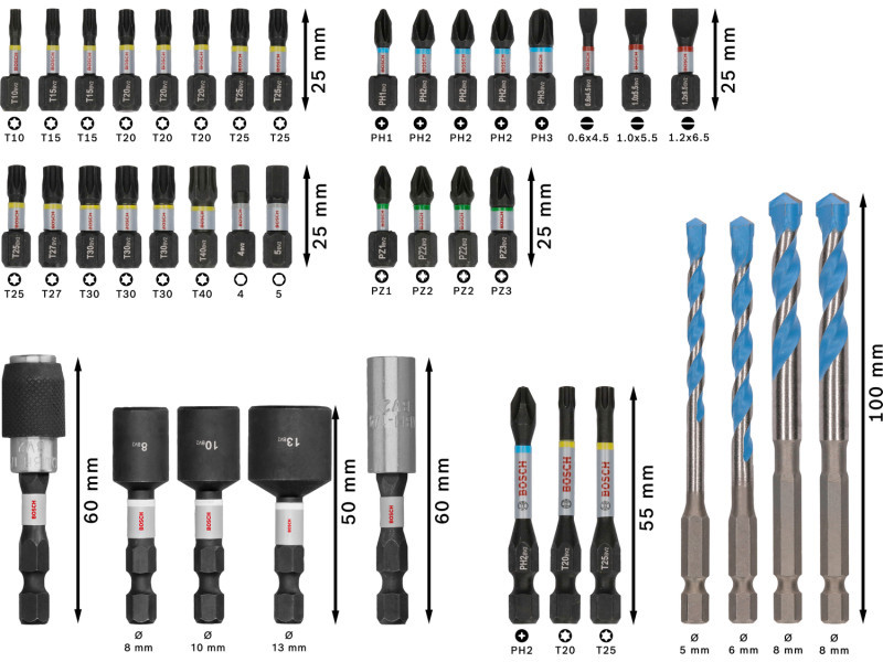 BOSCH PRO Impact bithegy és univerzálos fúrószár készlet 40 részes 1/4" Hex