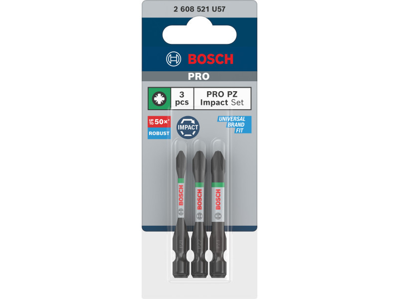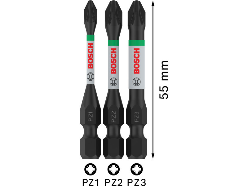 BOSCH PRO Impact bithegy készlet 3 részes PZ1 / PZ2 / PZ3 x 55 mm 1/4" Hex