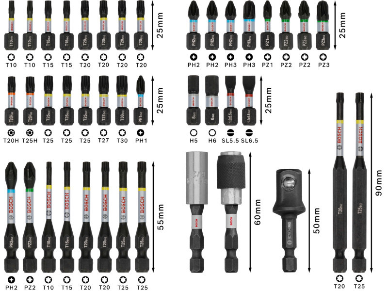 • T10; T15; T20 (2 db); T25 (2 db)
