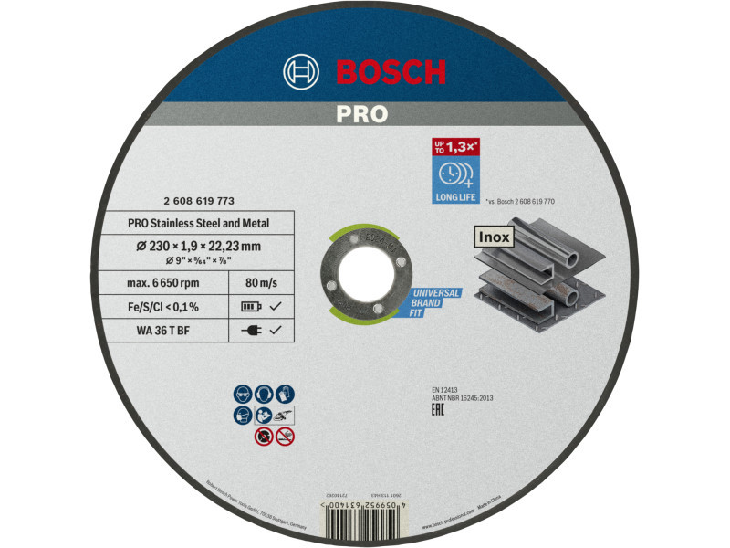 A PRO Stainless Steel and Metal kötőanyaggal készült vágótárcsa prémium minőségű alumínium-oxid szemcséket használ a szilárdság és tartósság érdekében. A csiszolószemcséket funkcionális töltőanyagokkal kombináltuk, és a szilárdság fokozása érdekében fenolgyantába ágyaztuk be. A vágótárcsát kiváló minőségű üvegszálas hálóval erősítettük meg a biztonságosabb és stabilabb teljesítmény érdekében. Plusz, fémmentessé tettük. Ez azt jelenti, hogy nem kell aggódnod a munkadarab rozsdásodása miatt, ha csak rozsdamentes acélt vágsz.