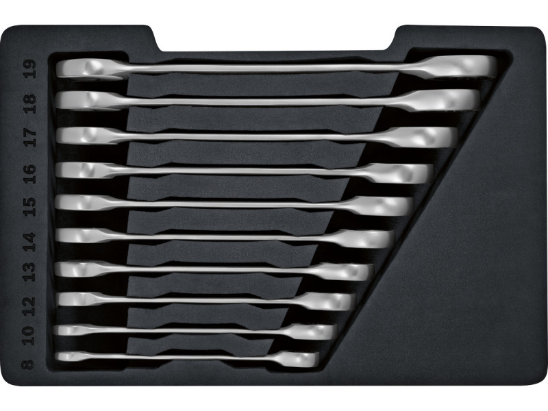 A készlet tartalma: 8, 10, 12, 13, 14, 15, 16, 17, 18 és 19 mm.
