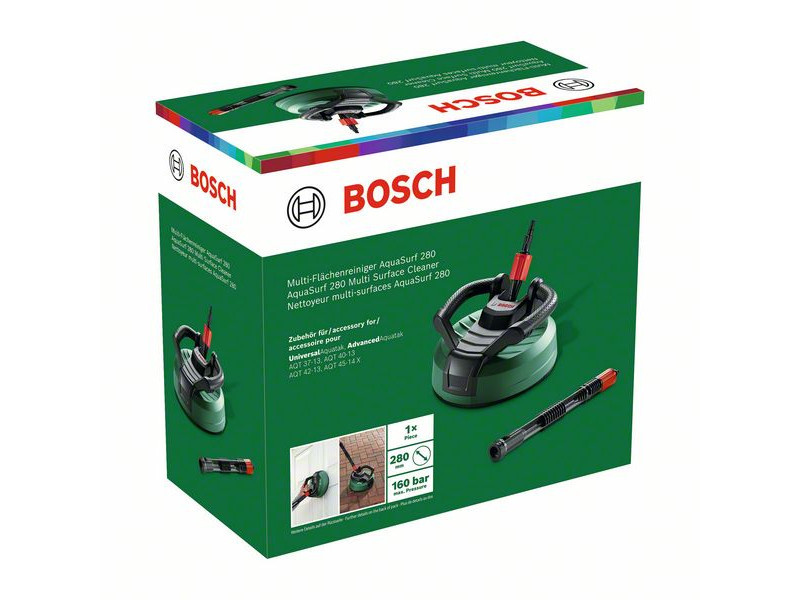 Az AquaSurf 280 univerzális felülettisztító hatékonyan megtisztítja a nagy gépkocsibejárókat és teraszokat, valamint a függőleges felületeket (pl. garázs, fal). Könnyedén köröz a megtisztítandó felületen, és egy szempillantás alatt eltávolítja az algát, a zuzmót és a mohát. Emellett a 280 mm-es átmérő kiemelkedően hatékony a nagy felületeken végzett gyors munkához. A kefe szegőcsíkja megakadályozza a víz kifröccsenését, így szárazon tartja a környezetet, míg a praktikus beépített fogantyúk lehetővé teszik a függőleges tisztítást. Könnyedén halad kövön, téglán, fapadlón, a rögzítőmechanizmus pedig gondoskodik a lándzsa merevségéről – a legnehezebb tisztítási feladatok elvégzéséhez-