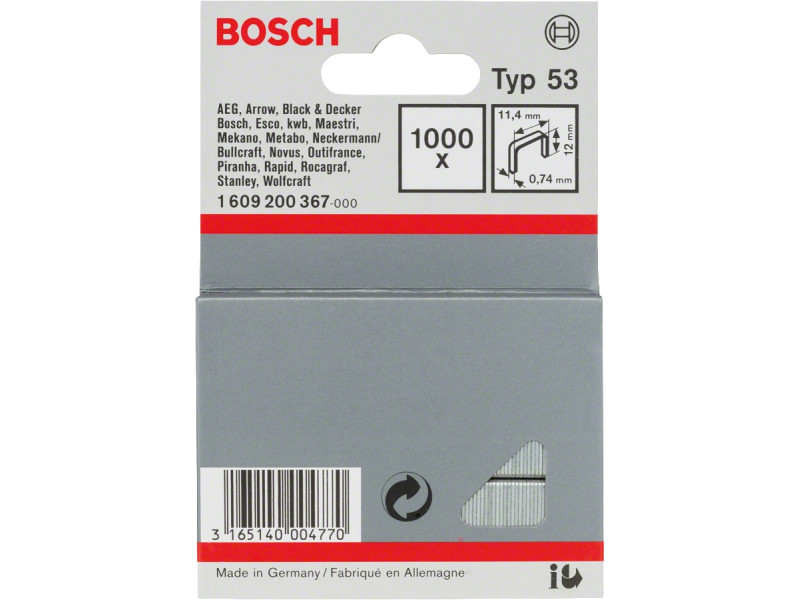 BOSCH Tűzőkapocs 12 x 11,4 x 0,74 mm HT14 tűzőgéphez (1000 db)