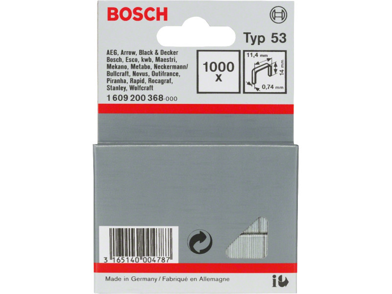 BOSCH Tűzőkapocs 14 x 11,4 x 0,74 mm HT14 tűzőgéphez (1000 db)