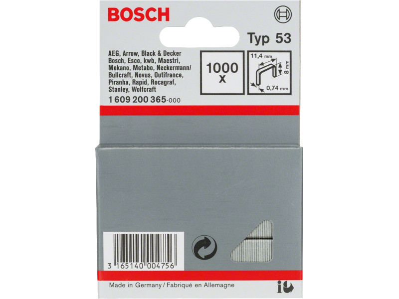 BOSCH Tűzőkapocs 8 x 11,4 x 0,74 mm HT14 tűzőgéphez (1000 db)