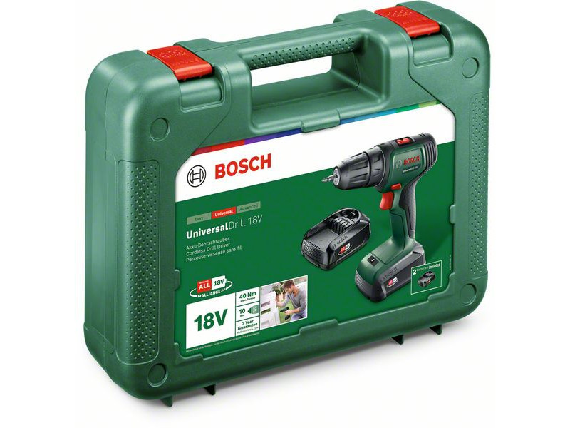 Ez a könnyű és kompakt fúrógép az erő és sokoldalúság ideális kombinációját nyújtja. Az ergonomikus kialakítás kényelmes kezelést biztosít. A 20 különböző nyomatékbeállításnak és a maximum beállításnak köszönhetően mindig minden feladathoz a megfelelő teljesítményt biztosítja. A kétsebességes bolygókerekes hajtómű hosszú élettartamot és gyors munkavégzést biztosít. A UniversalDrill 18V tökéletes választás a fába, fémbe és műanyagba történő fúráshoz és csavarozáshoz. Ez a szerszám a POWER FOR ALL ALLIANCE rendszer része. Egyetlen akkumulátorral nagyszámú, különböző márkájú szerszám működtethető.