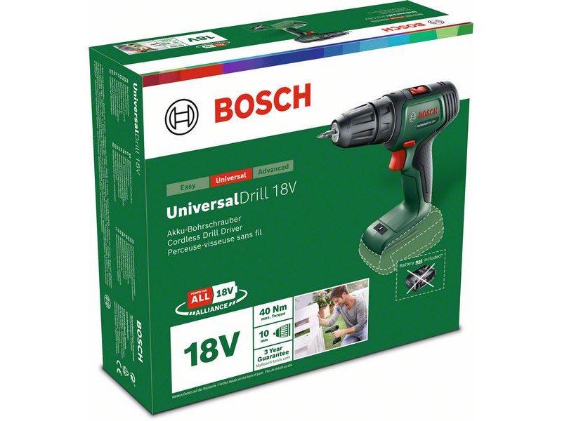 BOSCH UniversalDrill 18 Akkus fúrócsavarozó (akku és töltő nélkül)