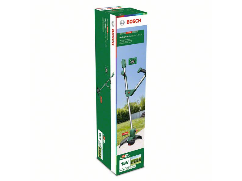Az erőfeszítés nélküli fűnyírásra tervezett UniversalGrassCut 18V-260 ergonomikus, V alakú fogantyúval rendelkezik, teleszkópos magasságállítással a természetes testhelyzetben történő, kényelmes kezelésért. Az IntelliFEED funkció automatikusan adagolja a vágószálat, így nem kell többé megállni, lehajolni, és kézzel adagolni a szálat. A sokoldalú fej egy lábbal működtethető pedállal és a fogantyú elcsavarásával elforgatható, így könnyedén válthatunk nyírásról szegélynyírásra. A növényvédő elem gyengéden óvja a virágokat a virágágyások körüli munka közben. Teljesen feltöltött akkuval, egy töltéssel a szegélynyíró nyolc teniszpálya szegélyének lenyírására alkalmas. Ez a szerszám a POWER FOR ALL ALLIANCE rendszer része. Egyetlen akkumulátorral nagyszámú, különböző márkájú szerszám működtethető-
