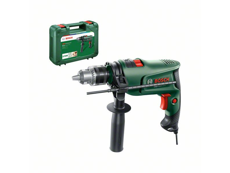 Az EasyImpact 570 kényelmes fúrást tesz lehetővé falazatban, fában, fémben és lágybetonban. Az Autolock gyorsbefogó tokmány gyors, egykezes bitcserét biztosít: a fúrótengely automatikusan reteszelődik a bit biztos tartása érdekében. A Bosch elektronikus fordulatszám-vezérlés biztosítja az anyagnak megfelelő sebességet a nyomásra érzékeny kapcsolónak köszönhetően. Ergonomikus kialakításának köszönhetően kis súlyú (mindössze 1,6 kg-os) és kompakt – a fej feletti fúrás könnyedén történő elvégzéséhez. Az 570 W-os motor megbízható eredményt nyújt számos anyagban; falazatban akár 12 mm-es és fában akár 25 mm-es fúrásmélységgel.