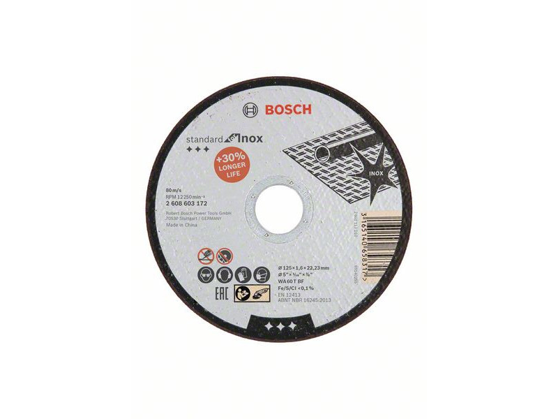 A Bosch vágótárcsák a szigorúbb biztonsági követelményeknek is megfelelnek, teljesítik például az EN 12413 előírásait