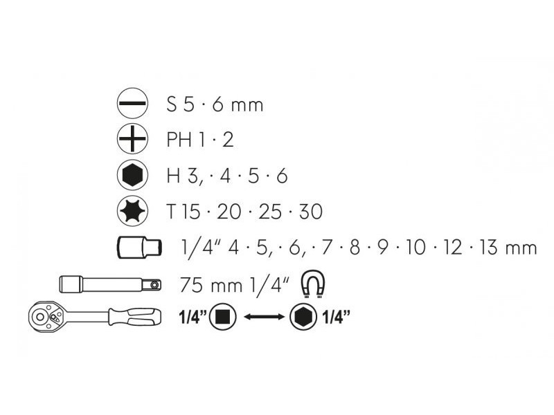 Bithegy és dugókulcs készlet 23 részes 1/4" mágneses CrV