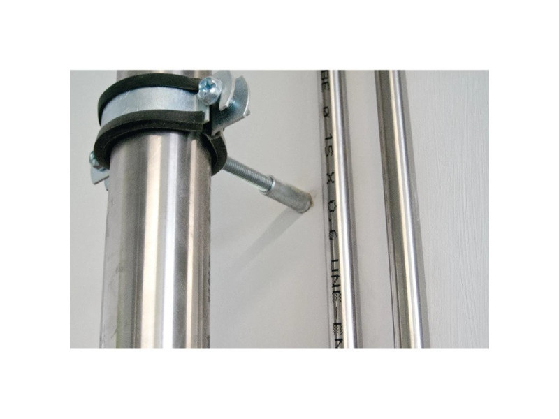 CELO RI M8+M10 kombinált belső menetes, EPDM gumi szigetelésű bilincs nagy terhelhetőséggel. Kettős erősítő bordával ellátott bilincs, hőmérséklet és öregedés álló szilikon betéttel. Kiváló minőségű acélból. A szett tartalma: 2 db Ø 40 bilincs, 2 db FX 10 dűbel, 2 db EDR M8x80 ászok csavar