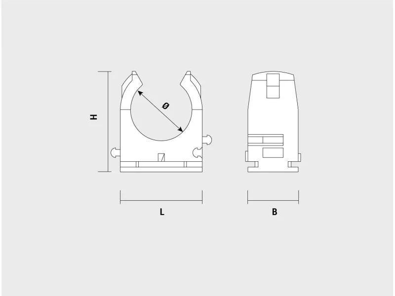 A CELO Multiclip nyitott rögzítő bilincs sorolható, a bilincsek egymással összekapcsolhatók. Telepíthető NP beütős dűbellel, vagy FX Ø6 és Ø4,5x35/45 csavarral. Központi furat átmérője 4,5 mm. UV álló és halogénmentes.