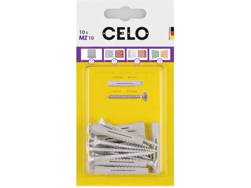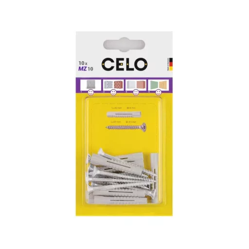 A CELO MZ univerzális dübel milliószor bizonyította kiválóságát és szinte az összes építőanyagban használható. A dübel 4 irányú tágulása a tömör anyagokban és csomózó effektusa üreges építőanyagokban és gipszkartonban, mindig megfelelő rögzítést biztosít magas terhelhetőséggel. Kompatibilis különböző típusú és méretű csavarokkal. Kiváló minőségű polietilént tartalmaz, amely garantálja az MZ univerzális dübel tartós rugalmasságát.