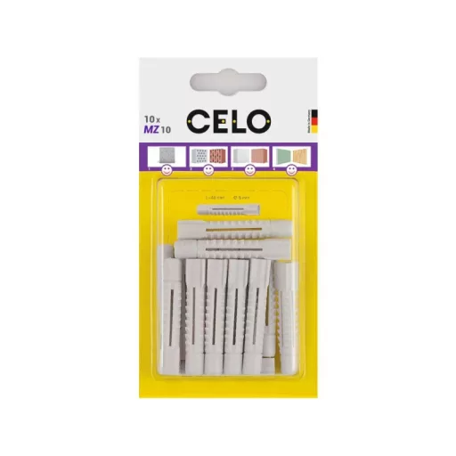 A CELO MZ univerzális dübel milliószor bizonyította kiválóságát és szinte az összes építőanyagban használható. A dübel 4 irányú tágulása a tömör anyagokban és csomózó effektusa üreges építőanyagokban és gipszkartonban, mindig megfelelő rögzítést biztosít magas terhelhetőséggel. Kompatibilis különböző típusú és méretű csavarokkal. Kiváló minőségű polietilént tartalmaz, amely garantálja az MZ univerzális dübel tartós rugalmasságát.