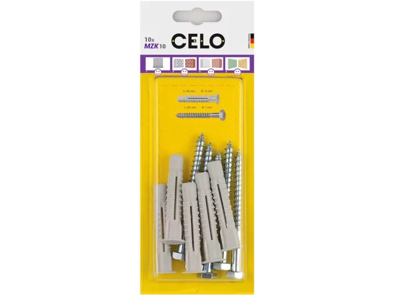 A CELO MZK univerzális galléros dübel milliószor bizonyította kiválóságát és szinte az összes építőanyagban használható. A dübel 4 irányú tágulása a tömör anyagokban és csomózó effektusa üreges építőanyagokban és gipszkartonban, mindig megfelelő rögzítést biztosít magas terhelhetőséggel. A gallér megakadályozza a dübel furatba csúszását. Kompatibilis különböző típusú és méretű csavarokkal. Kiváló minőségű polietilént tartalmaz, amely garantálja az MZ univerzális dübel tartós rugalmasságát.