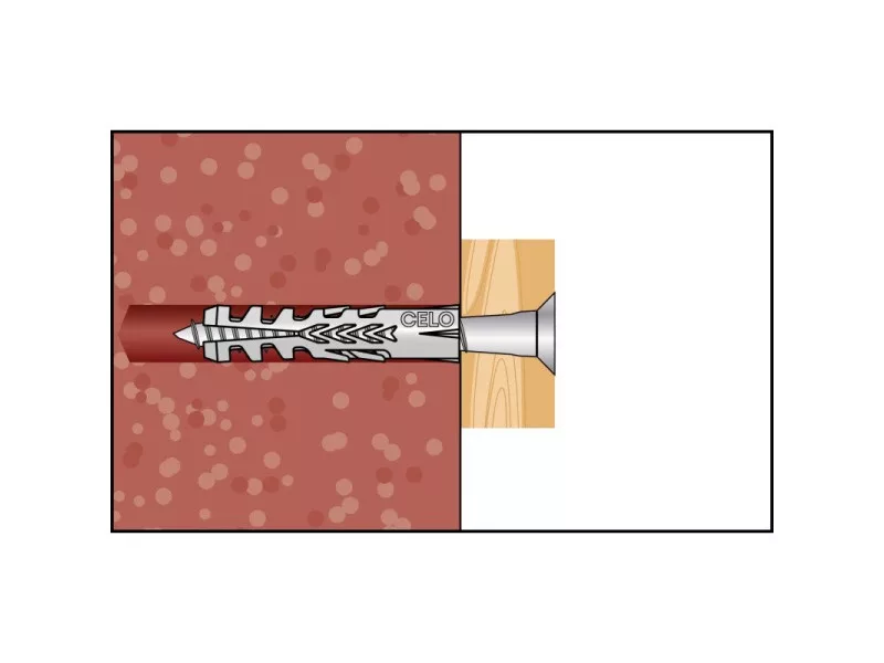 A CELO F általános dübel nagy tágulási képességének köszönhetően magas kihúzási értékekkel rendelkezik. Széles méret választékban kapható 4-20 mm átmérőig. Az F általános dübel ideális választás tömör építőanyagokhoz, de üreges tégla és pórusbeton szerkezetekben is jó terhelhetőségi értékekkel bír. Jó csavarvezetése miatt a csavar nem mozdul ki a behajtás során.