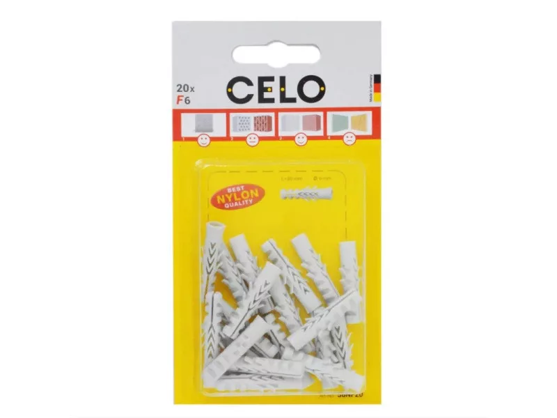 A CELO F általános dübel nagy tágulási képességének köszönhetően magas kihúzási értékekkel rendelkezik. Széles méret választékban kapható 4-20 mm átmérőig. Az F általános dübel ideális választás tömör építőanyagokhoz, de üreges tégla és pórusbeton szerkezetekben is jó terhelhetőségi értékekkel bír. Jó csavarvezetése miatt a csavar nem mozdul ki a behajtás során.